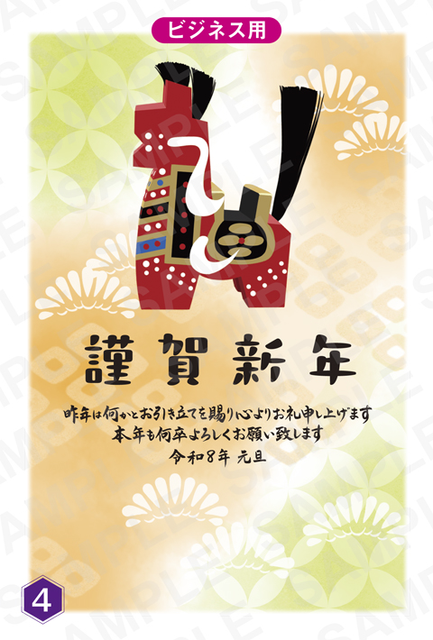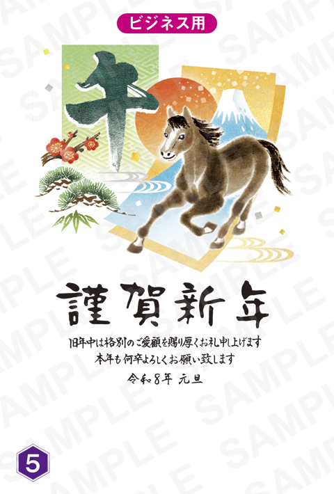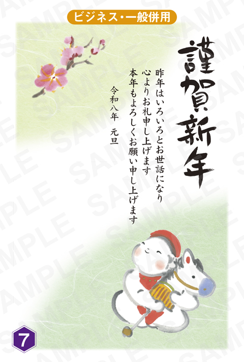 文章や絵柄も自由に組み合わせられますので、お気軽にご利用ください。(年賀欠礼状もあります。)※見本の「ビジネス用」とは、主に文章が事業所様用ですので、一般の方は文章を他の絵柄の文章と組み合わせてもOK!)