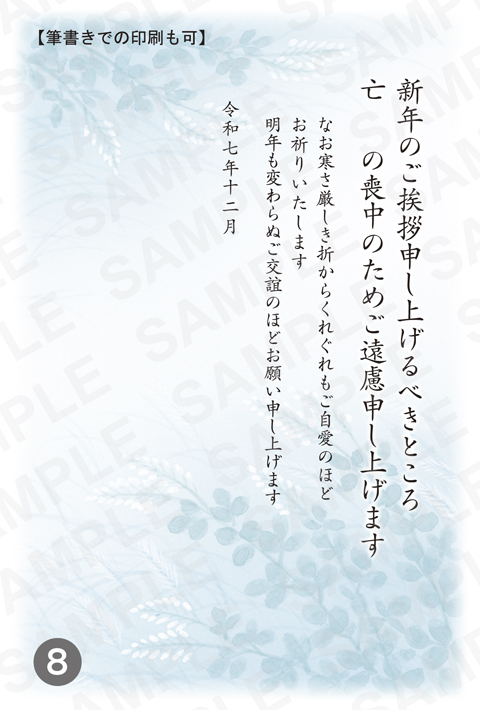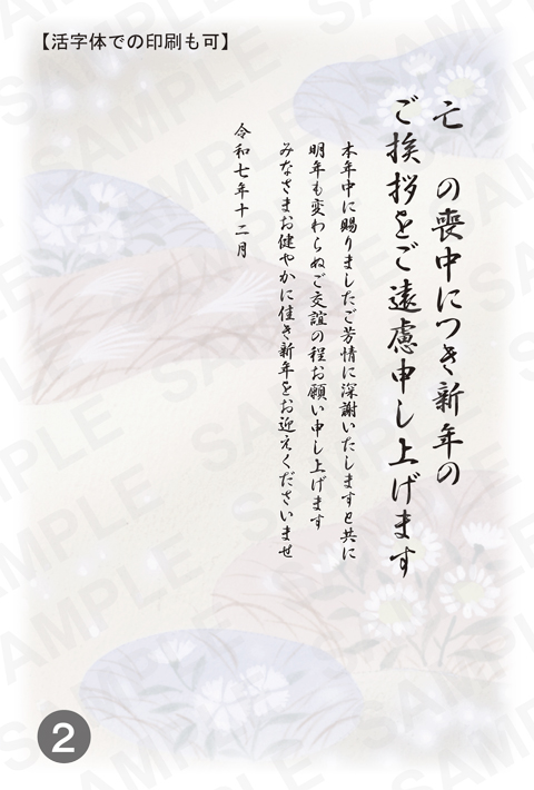 2025年山田印刷所の喪中はがきの見本をご用意いたしました。